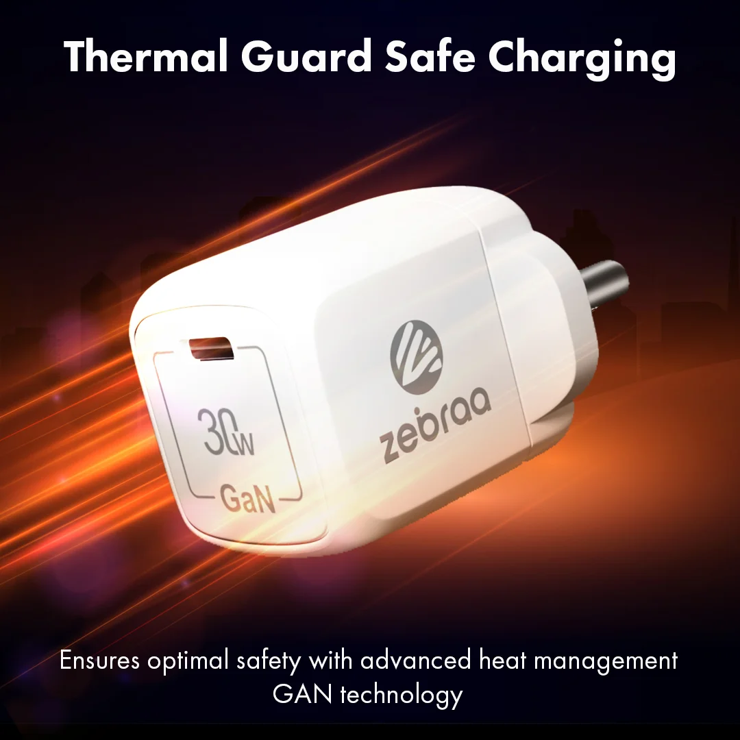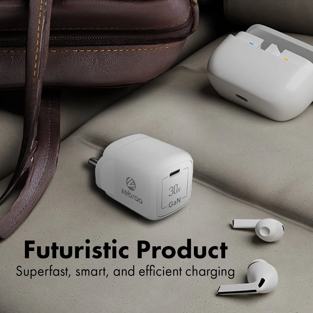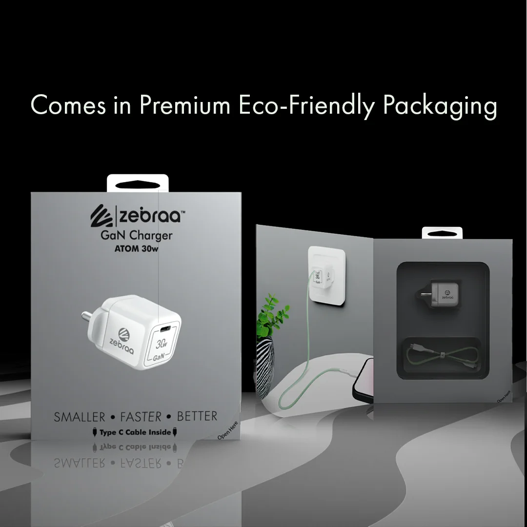 Power up your day with the Zebraa Atom 30W GaN Charger. Built for speed, safety, and style, it efficiently charges all your favorite devices—from smartphones to iPads—while staying cool and compact.