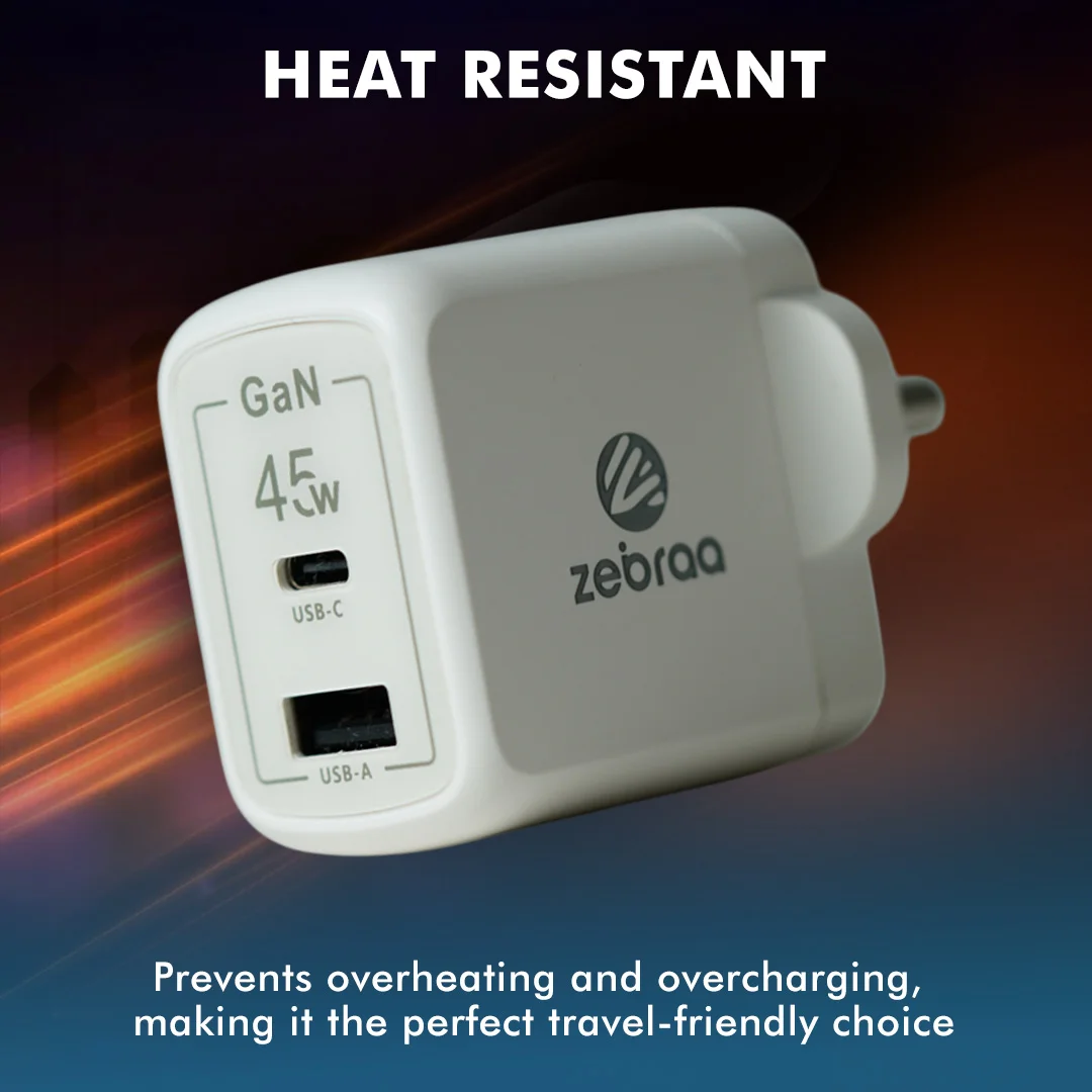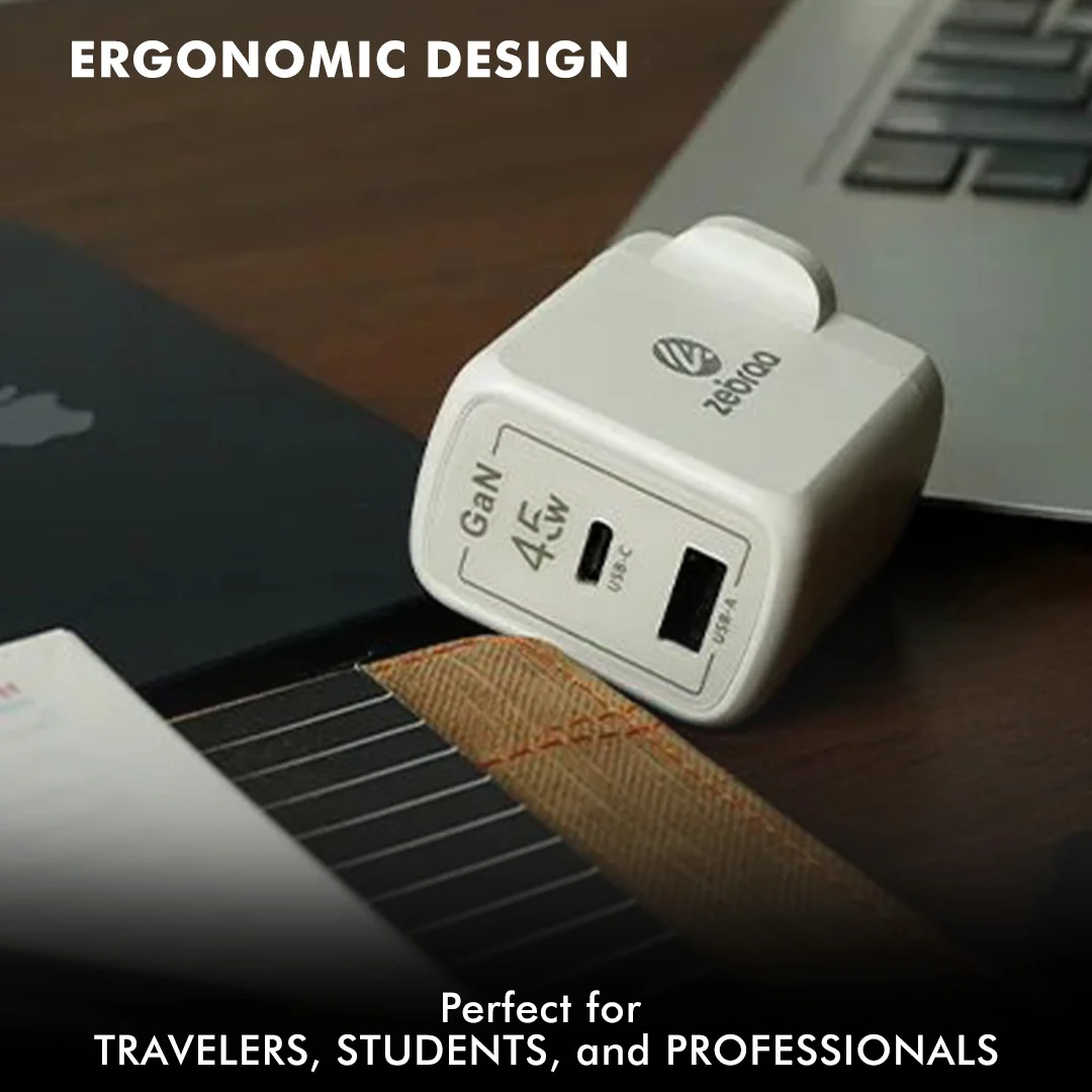 The Zebraa Atom 45W GaN Charger is your perfect everyday powerhouse — compact enough for your pocket yet powerful enough for your mobile. With smart power distribution and GaN efficiency, it can charge your Ipad, tablet, and mobile at high speed.